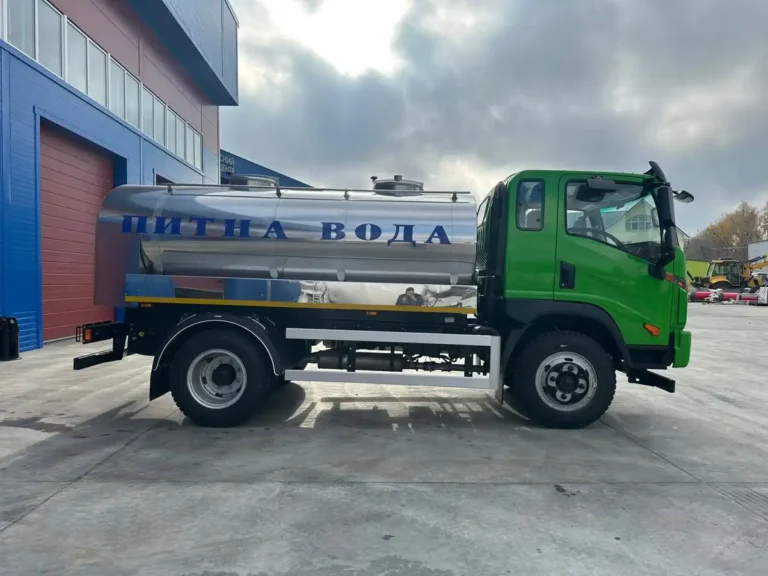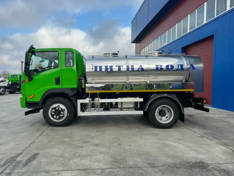 Цистерна двосекційна для перевезення питної води об’ємом 5 куб.м. Внутрішня частина цистерни виготовлена з харчової нержавіючої сталі марки AISI 304. Ззовні цистерна облицьована технічною нержавіючою сталлю марки AISI 430. Простір між корпусами заповнений теплоізоляційним матеріалом.